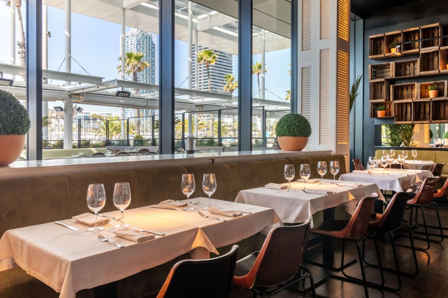 Este restaurante para despedidas está situado en el Port Olímpic de Barcelona, en un entorno privilegiado junto al mar.